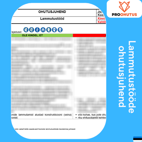 🛡️ Meie professionaalselt koostatud ohutusjuhendi näidis aitab Sul kiiresti luua või uuendada oma organisatsiooni tööohutuse dokumentatsiooni – nii, et see oleks päriselt arusaadav ja rakendatav.