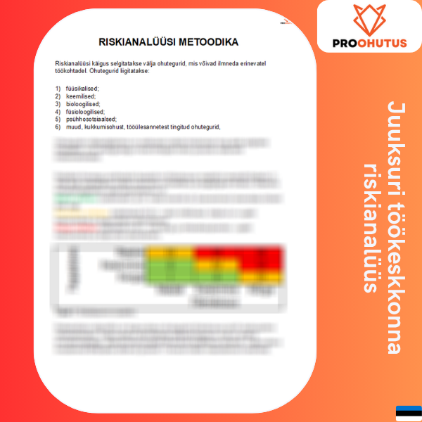 NB! Tegemist on töökeskkonna riskianalüüsi näidisega, mille sisu tuleb vastavalt organisatsiooni iseloomule kohendada ja muuta.