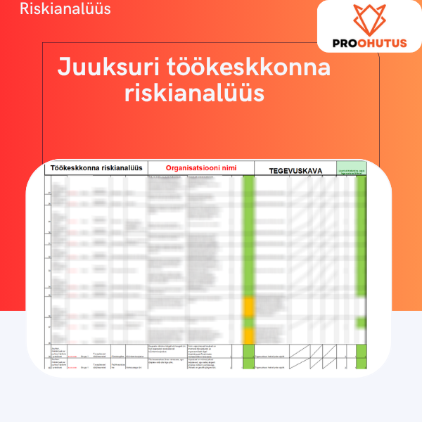 Oleme koostanud teile töökeskkonna riskianalüüsi näidise, mida on hea võtta aluseks enda organisatsiooni riskianalüüsi koostamisel. Lisaks saate kaasa lühijuhendi, kuidas riskianalüüsi täiendada.